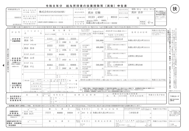 年末調整申告書エクセル 年末調整申告書(令和7年度年末調整用) 扶養控除等(異動)申告書、配偶者控除等申告書、保険料控除申告書、その他年末調整用資料の作成ができます。 給与受給者に入力してもらってください。 印刷した申告書を提出してもらうことにより、かんたん年末調整forエクセルの使用がより便利になります。ぜひご利用ください。 出力帳票 扶養控除等(異動)申告書 配偶者控除等申告書 保険料控除申告書